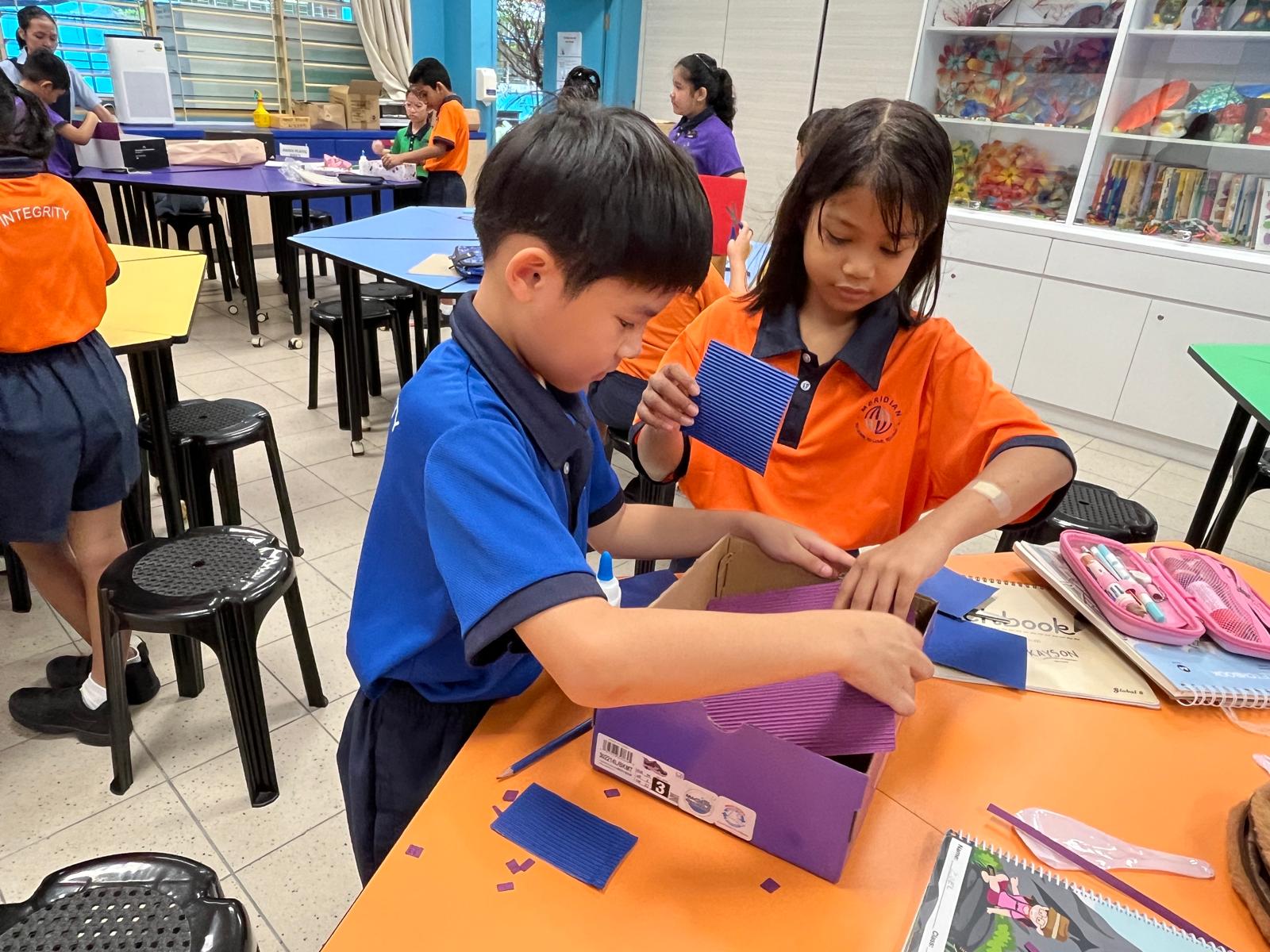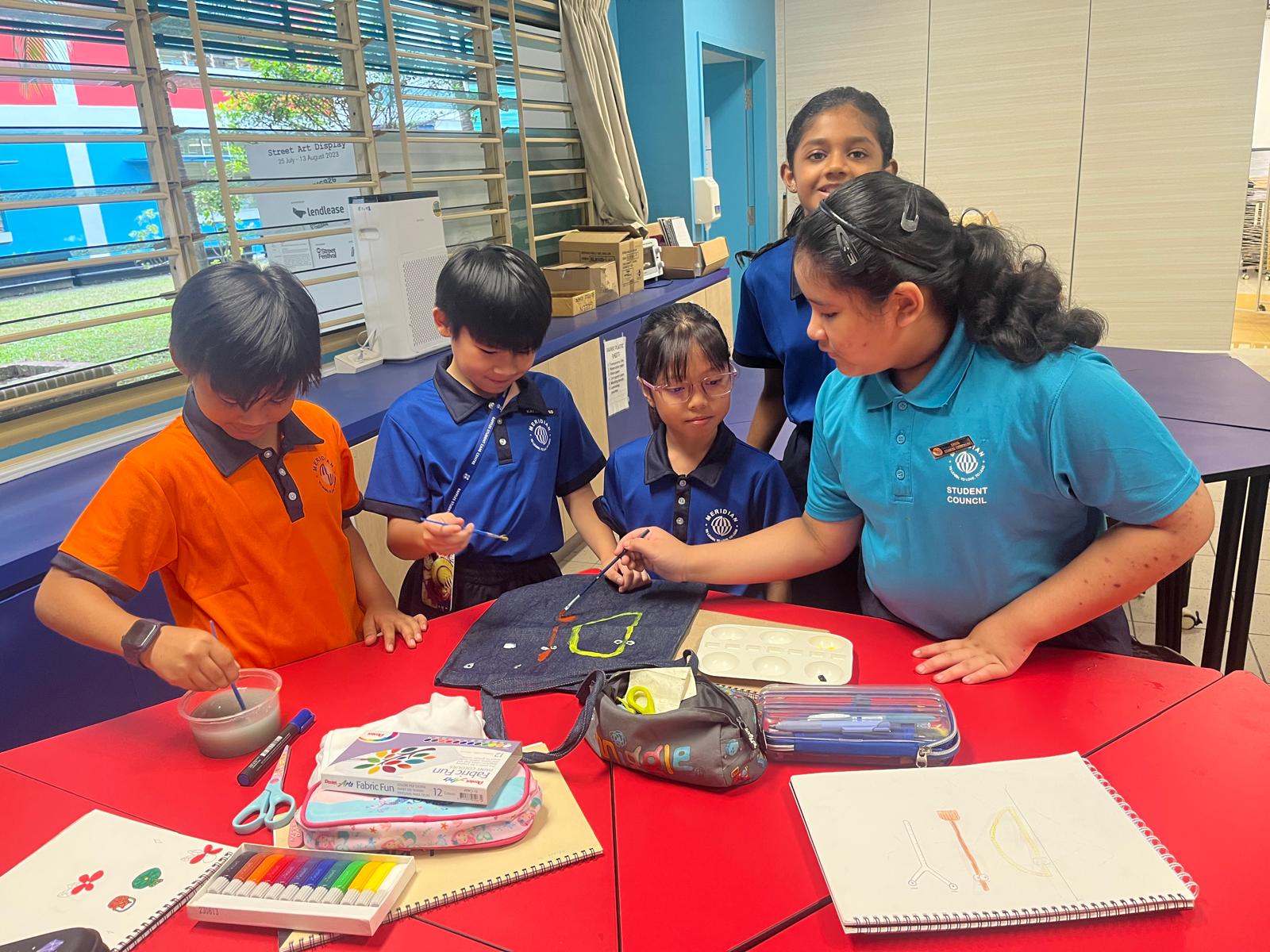 The Art Club members enjoy a variety of Art activities conducted during the CCA sessions. Students experiment with a variety of materials and explore the possibilities of conventional materials like Batik dye, watercolour, and recyclable materials. Our Art Club members have enjoyed activities such as tie and dye, fashion design using recyclable materials, and sculpting using wires and paper mache.